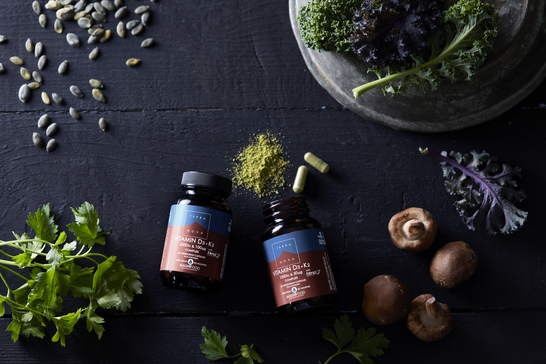 Dine knogler og led har brug for en masse af de rigtige næringsstoffer for at forblive stærke og sunde. Varieret kost, sund livsstil, motion og god nattesøvn understøtter alt sammen knoglernes og leddenes sundhed. Med kosttilskud kan du yde yderligere støtte, hvis det er nødvendigt.Vitamin D3 og vitamin K2 er gavnlige for knoglesundheden. I vores udvalg finder du både den veganske k2-vitamin 100ug-complex og en kombination af D3 og K2. Begge produkter indeholder også grøntsager, der understøtter virkningen af vitaminerne. Produkterne indeholder ingen fyldstoffer.